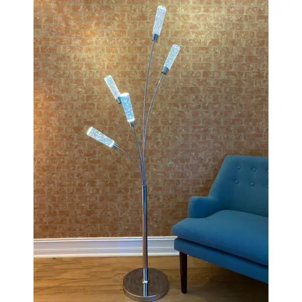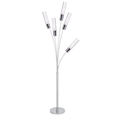 This modern approach to floor lamps offers not only beauty, but also elegance with five crystal cylinders on a round chrome base. This floor lamp is perfect to create mood lighting and ambiance.