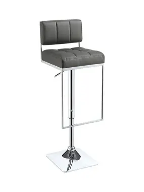Sleek and compact, this handsome bar stool enhances even the smallest of spaces with an edge of contemporary flair. Its understated elegance easily matches with most any style of decor. The crisp, clean lines of its modern silhouette combine pleasingly with the classic tufting of its plush, leather-like seats. A shiny, silvery chrome finish adds an appealing touch of polish. This versatile stool is easily adjustable to accommodate the height of any table or counter, upgrading any living space with comfort and