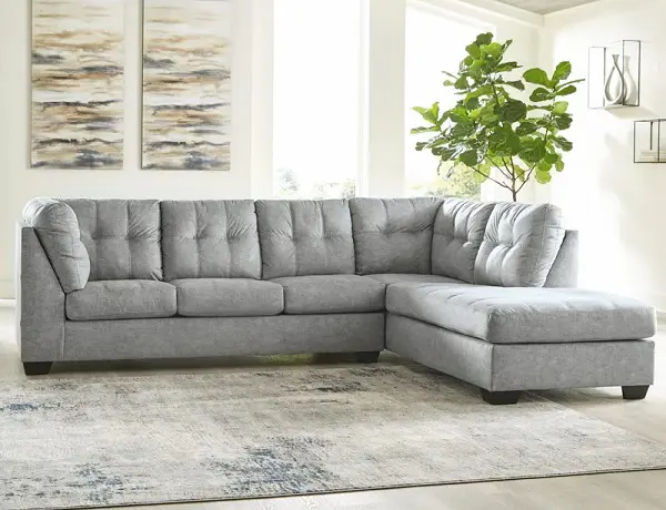 - Includes 2 pieces: right-arm facing corner chaise and left-arm facing sofa;Left-arm and “right-arm” describe the position of the arm when you face the piece;Corner-blocked frame;Attached back and loose seat cushions;High-resiliency foam cushions wrapped in thick poly fiber;Polyester upholstery;Exposed feet with faux wood finish;Platform foundation system resists sagging 3x better than spring system after 20,000 testing cycles by providing more even support;Smooth platform foundation maintains tight, wrinkle-free look without dips or sags that can occur over time with sinuous spring foundations
