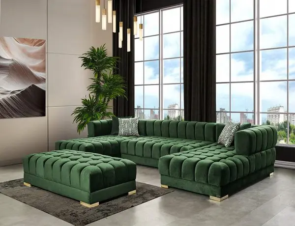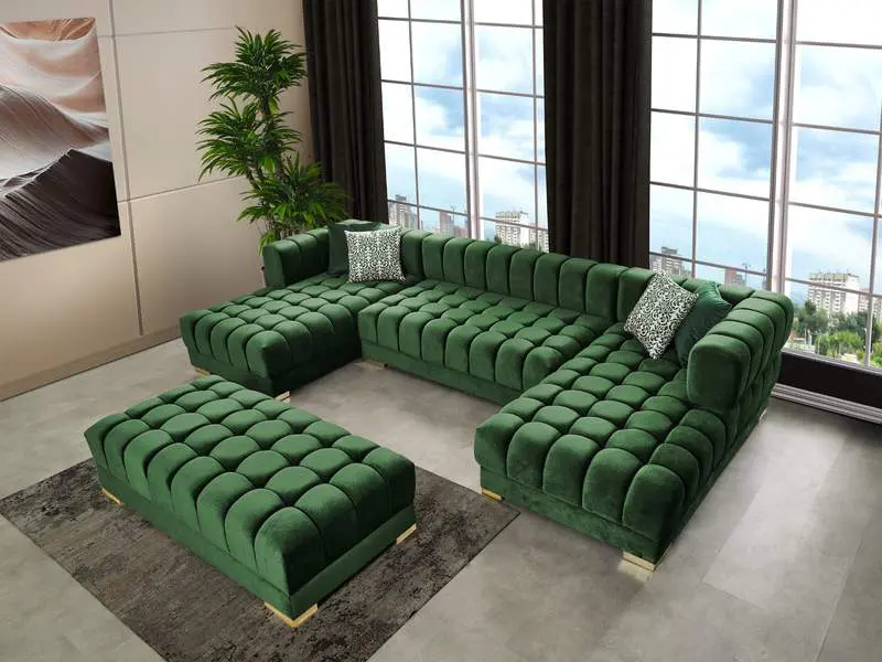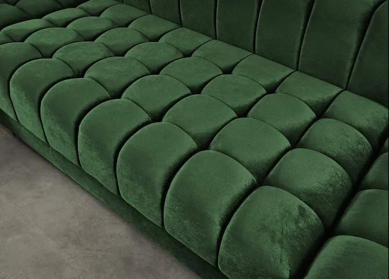 Settle in for family game night atop this velvet sectional that’s upholstered with soft green velvet material. This 3-piece sectional has a lot to offer, with its deep seating and extra wide design that gives you oodles of room to move around and get comfy. The tufted design of the arms, back, and seats adds to their durability and soft, welcoming touch. The sectional comes with two sets of legs in both gold and chrome to mesh nicely with other elements in your room.