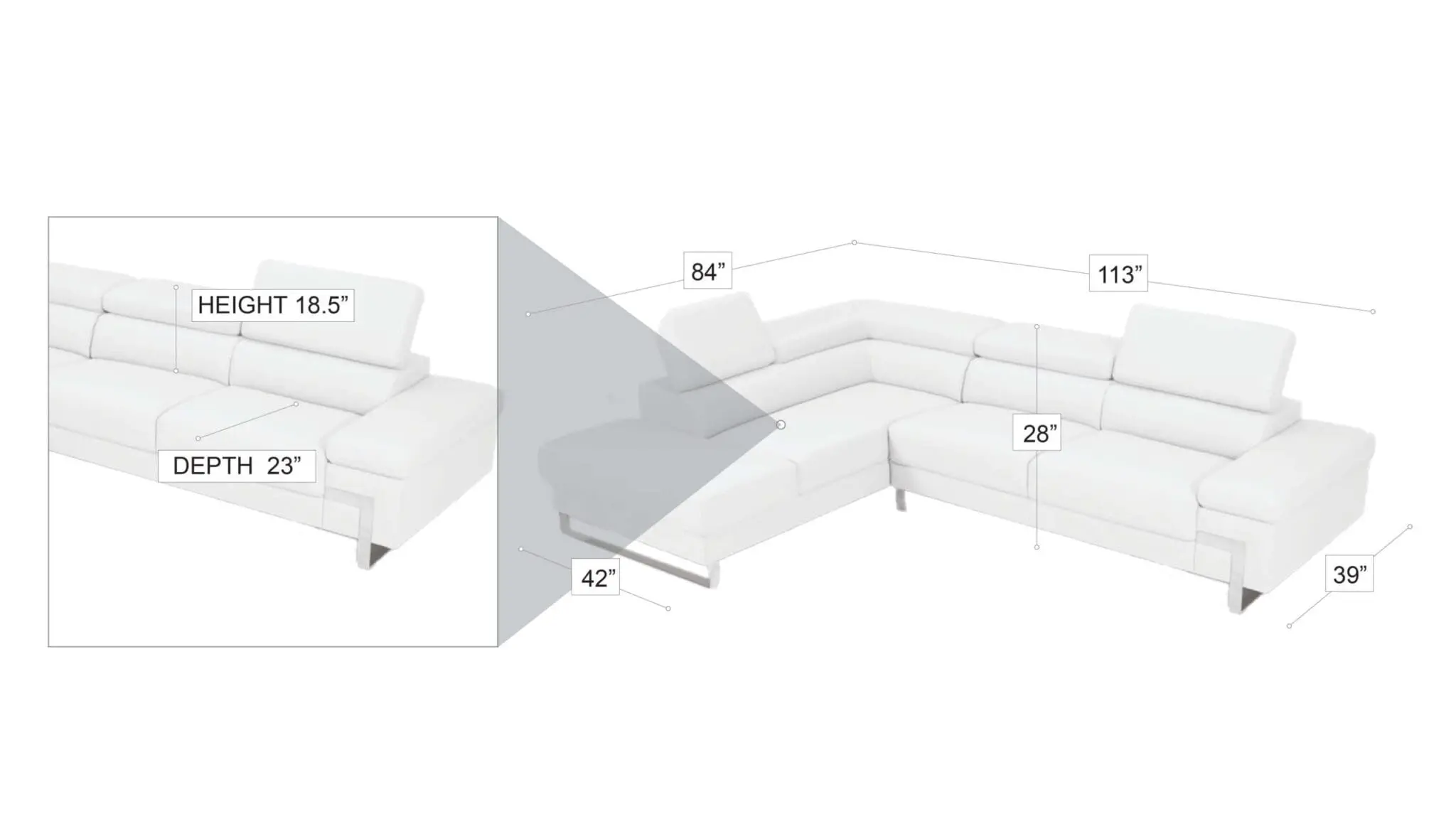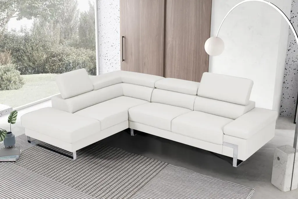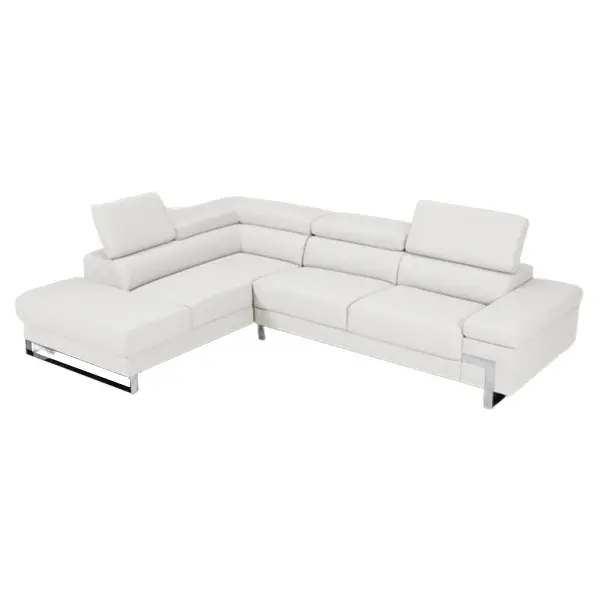 The sleek contemporary design of the Athena Sectional is magnified by the geometrically designed metal legs and the seats featuring a similar design.
