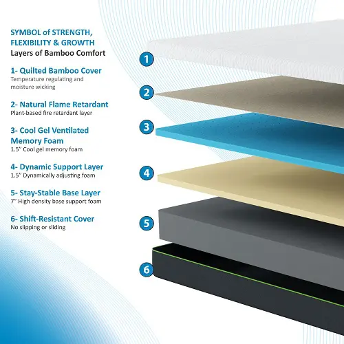 The cooling gel-infused memory foam supports your curves to reduce body pain, while the high density comfortable foam brings enough firmness that won’t sink your body further to the mattress and let it overheat while sleeping.