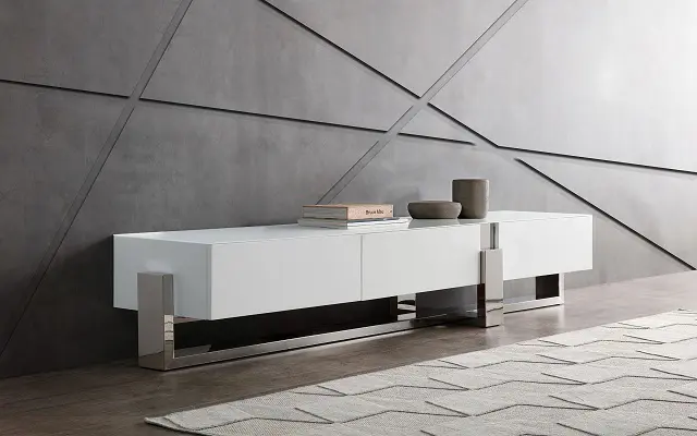 5mm Tempered Crystal Frosted Glass Top. Matte white. Polished Stainless-Steel base.