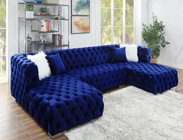 Blue Velvet Double Chaise Sectional