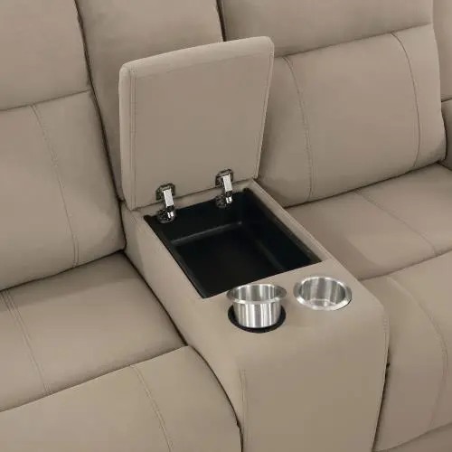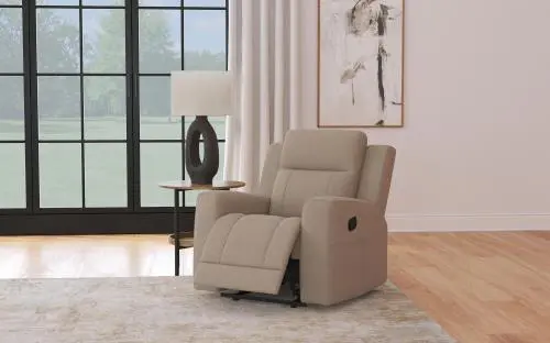 Spend the day looking forward to kicking back and relaxing on a modern reclining sofa. It boasts a pair of manual recliners, ideal for everything from movie marathons to enjoying game day with friends. Upholstery is suede-like with a matte look and feel, creating a soft neutral effect for your living room or den. The reclining sofa offers a modern look with smooth cushions and track arms, updating a classic recliner profile to create a piece that works in contemporary homes. Its refined look is enhanced with tufted accents that ensure comfort and support for the whole family.