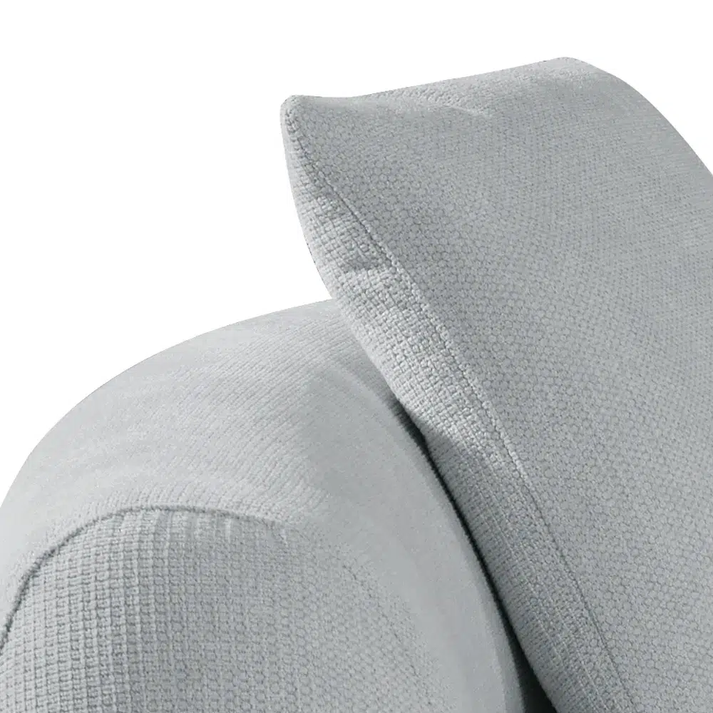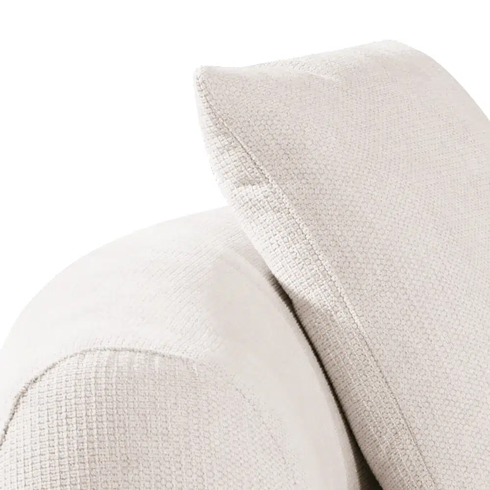 Bring a smooth, organic feel to your living room with this generous sofa. This statement piece takes inspiration from mid century styles, which fuse the sculptural minimalism of Japanese aesthetics and the inviting. Crafted with a solid wood frame and a beautfiful chromed low detail, it features a minimalist, asymmetrical design that embraces softly angled lines. Round arms and a tight back are padded with plush foam, while boucle upholstery adds a warm, textured touch. We love how this sofa’s gently curved shape is just right for large rooms with an empty corner. It comes with four toss pillows for added cushioning.