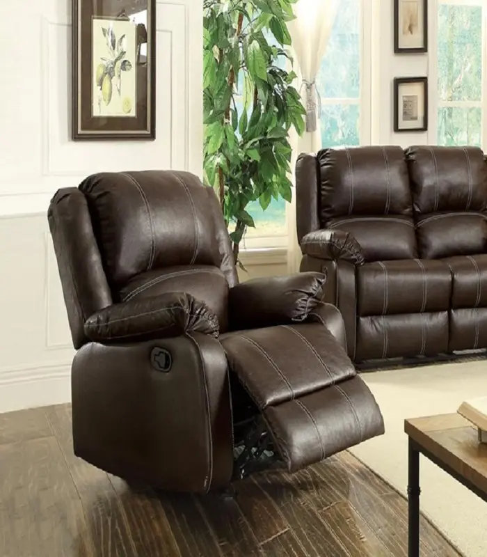 The Zuriel reclining sofa collection is a wonderful choice for any family room, combines luxurious faux leather with the comfort of padded, reclining seating. Comfortable contoured seats, soft to the touch while the reclining footrests offer full leg support. The recliner chair includes rocker function that allows you to rock gently up and down for ultimate comfort.