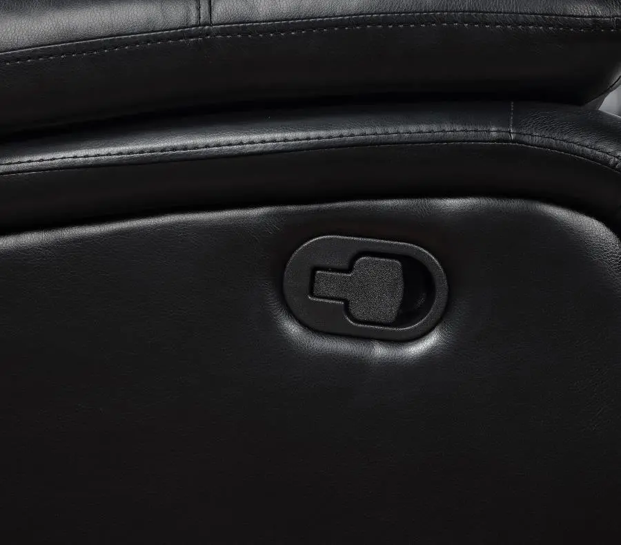 Bold black leatherette upholstery offers the look of luxurious leather with easy-care maintenance as the two-piece motion sofa set is versatile and beautiful. Living rooms, family rooms, and media venues become comfort zones with the plump feel and clean design of a classic sofa and loveseat set built for hours of seating comfort as well as entertaining. Manual reclining is easy and pleasant, allowing a variety of positions for sitting and lounging. Choose this elegant sofa set with pillowy support, as attached seat and back cushions feature plump foam filling with channeling to target body comfort and padded armrests over rounded sides. Entertain in style and sheer comfort with a motion sofa set that’s ideal for lounging and napping.