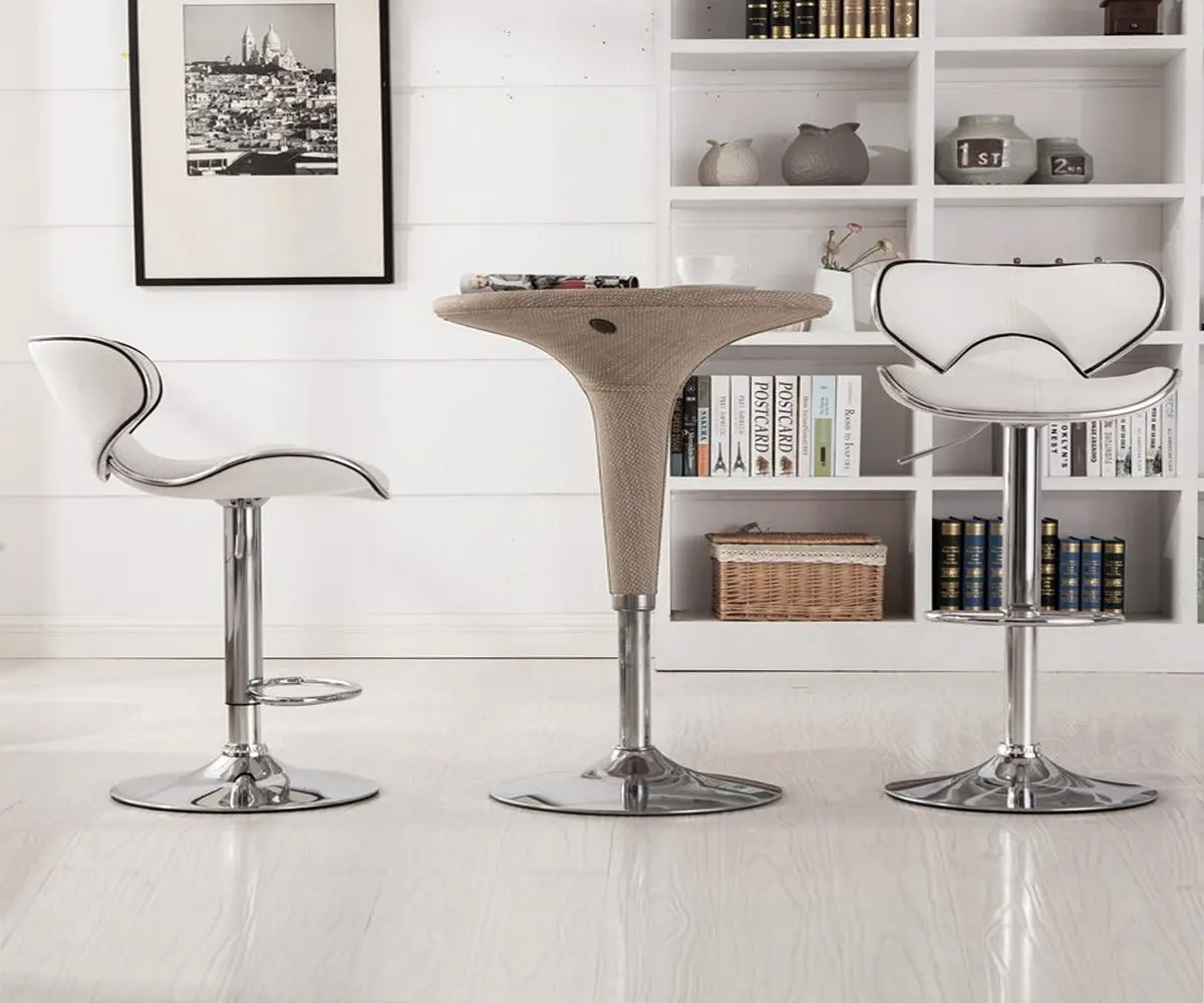 Contemporary bar stools with an elegant design, beautiful assent for any space counter or bar table, PU white, black, dark brown, grey or red color seat, and chrome base.
