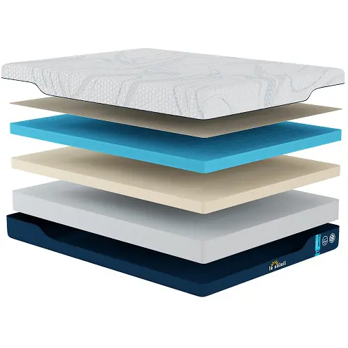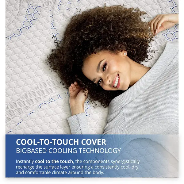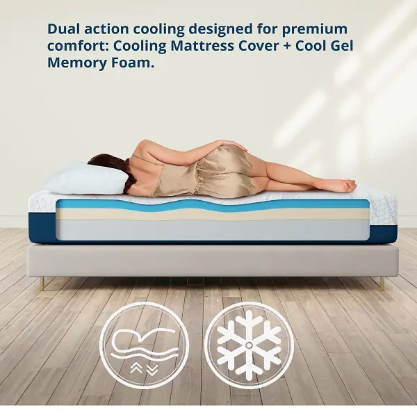 Sleep easy breezy on an airy, heat-wicking quilted cover with cooling technology. Gel memory foam cradles your body and relieves pressure, while the dynamic response transition layer provides tailored support, plus rebound and bounce.