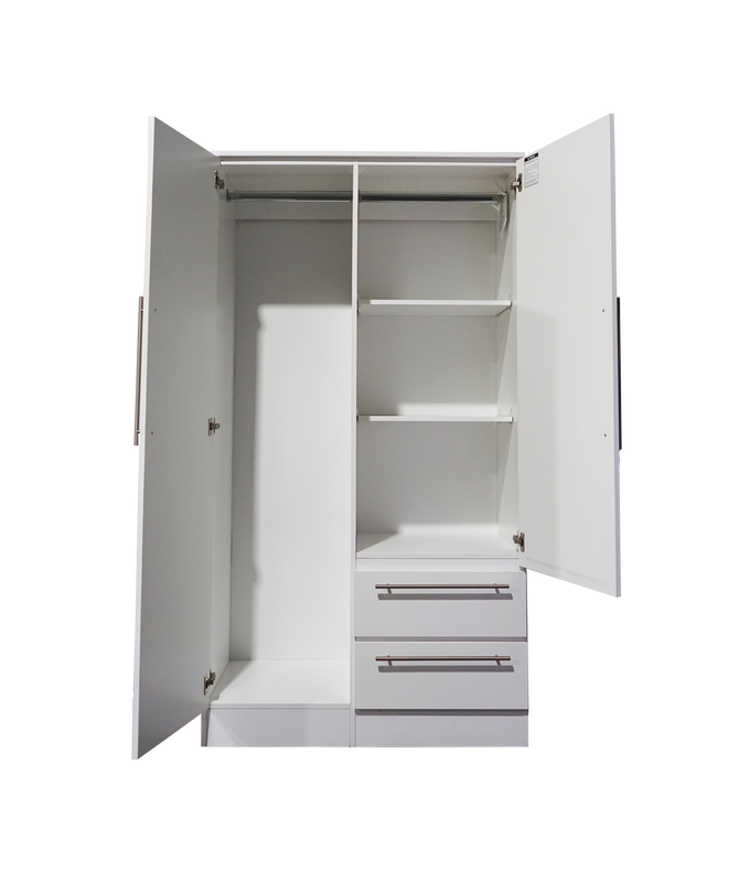 White (Black or Cappuccino Coming Soon ). New 2 doors Wardrobe with a front mirror and 2 drawers.