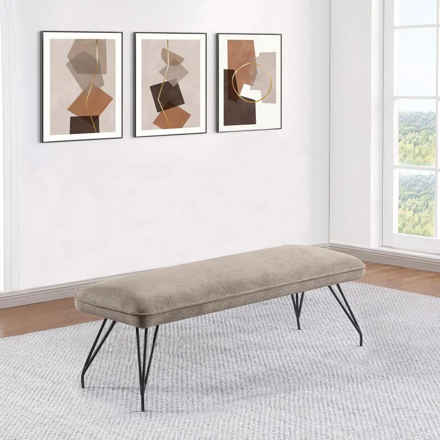 Freshen up your kitchen or dining room with a modern casual dining table. Its rectangular silhouette is versatile and stylish, perfect for multi-functional spaces like breakfast nooks and compact dining rooms. It boasts a medium brown wood grain tabletop finish, crafted with melamine for excellent durability and resistance to denting and scratches. An angled edge adds polished flair, perfect for an approachable, contemporary space. The table’s base features four angular V-shaped legs with a crossbar support, all in a black finish over metal construction that provides stability.