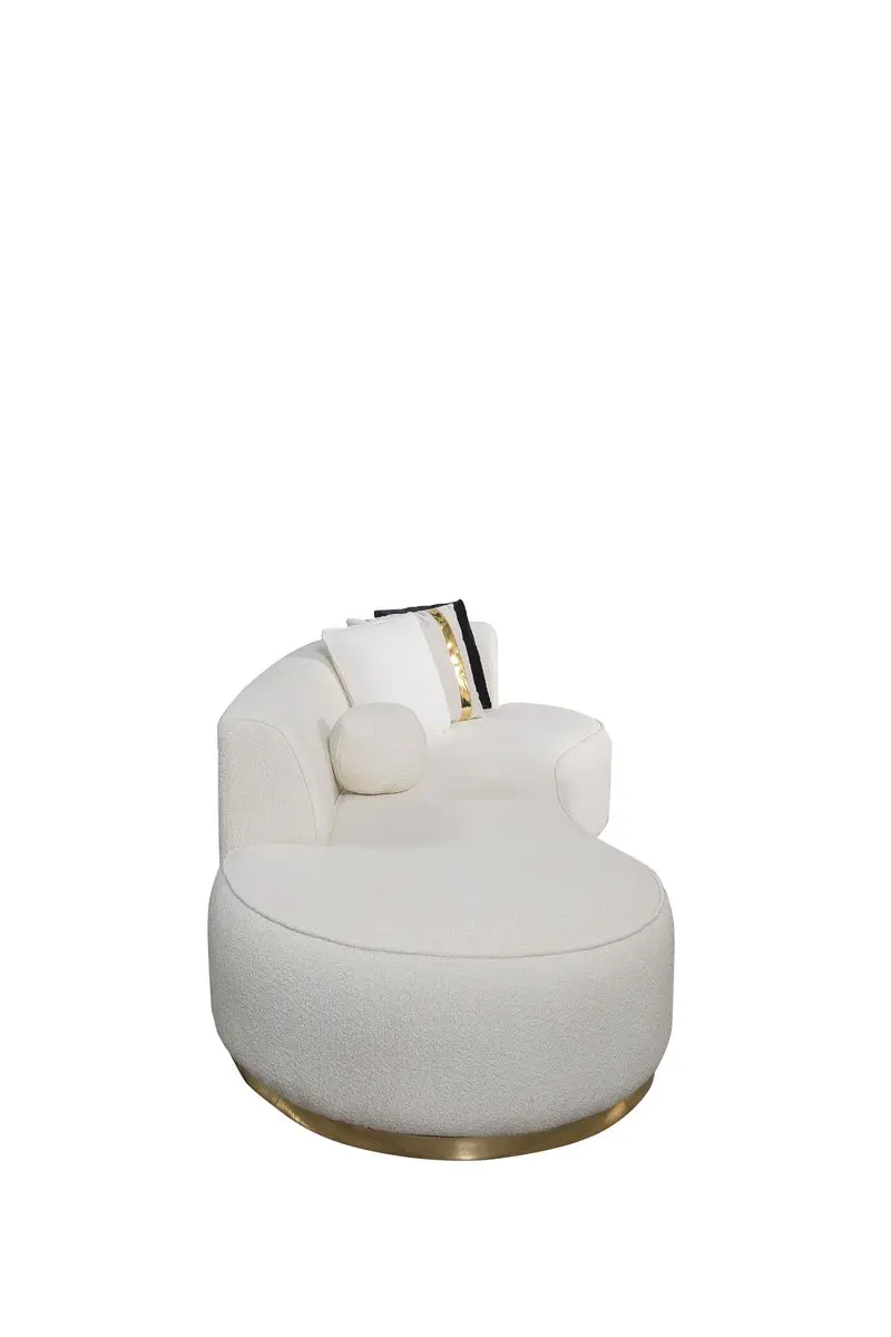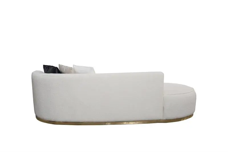 Ella Ivory Chaise Lounge is a stunning addition to your living space that effortlessly blends sophistication and modernism. The chaise lounge boasts a unique curved design. The black velvet color of Ella, exhibits sophistication and refinement. The bottom of the chaise lounge features a striking gold detail, adding a touch of opulence and glamour. The item comes with four square pillows and two round pillow.