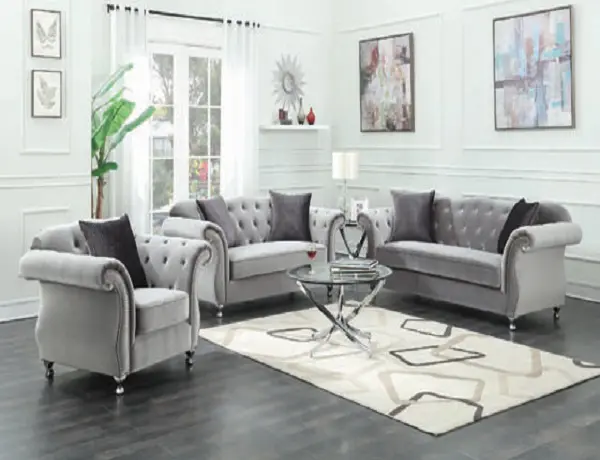 When only the most elegant, artful decor will do. This exquisite armchair reinforces the stylish traditional flavor of a living room or family room. Romantic touches include slender rolled arms and charming tufting. Sleek accented feet and arm trim create a genuinely beautiful aesthetic. With lush silver upholstery, this chair starts a custom look with glamorous possibilities.
