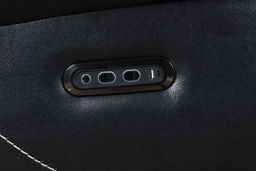 Experience ultimate luxury and relaxation with this three-piece dual power sectional sofa, crafted with top grain black leather that exudes elegance and durability. The contrast stitching and modern grid tufting design add a touch of sophistication, highlighting the luxurious material. The dual power functionality with power recline and power headrests offers customizable comfort, allowing you to adjust the position of the sectional to your liking with ease. The sectional includes a modern console that combines functionality with convenience, featuring hidden cup rests with removable stainless steel cup holders, a soft-close storage compartment, a USB-C charging port, and a wireless charger. Recline fully and find your perfect angle for ultimate relaxation with this beautifully designed sectional.