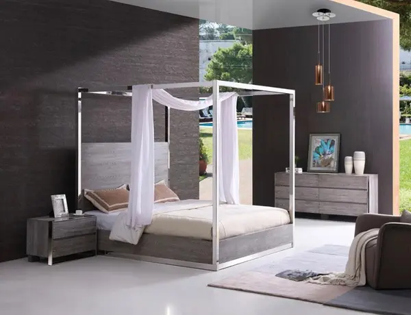 Modrest Arlene Modern Grey Elm & Stainless Steel Bedroom Set