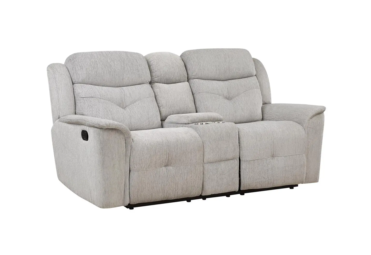 Comfortable and classy, this modern motion sofa is great for lounging. The cool upholstery emits a contemporary aura. Cozy and relaxing, the plush scoop seating allows you to sink into the cushions. Cushioned seat back and head and arm rests offer ample comfort to every seat. Two reclining seats make this sofa great for an afternoon nap or movie night.