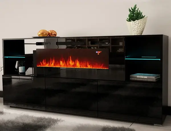 - Komi Electric Fireplace Sideboard – Modern Sideboard / Buffet / Credenza