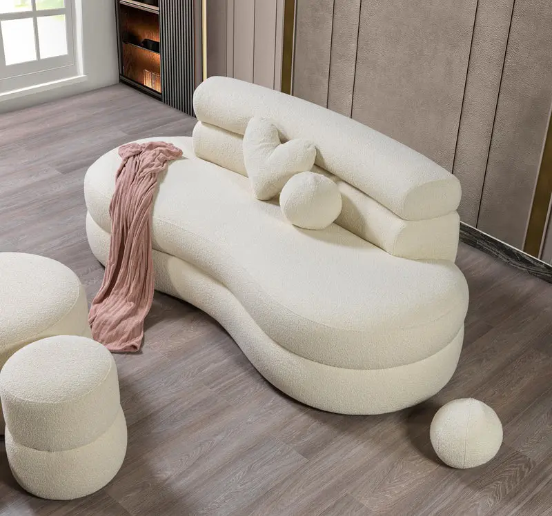 Introducing our Larissa Ivory Boucle Curved Loveseat, a perfect combination of style and comfort. Crafted with the utmost attention to detail, this sectional features luxurious boucle upholstery, known for its softness and texture. The Ivory color for this set is carefully selected to provide minimal yet post-modern look. Included with this extraordinary set are two pillows meticulously designed to complement the sectional’s aesthetic and provide additional support. Crafted to perfection, this sectional comes in three seamlessly integrated pieces.