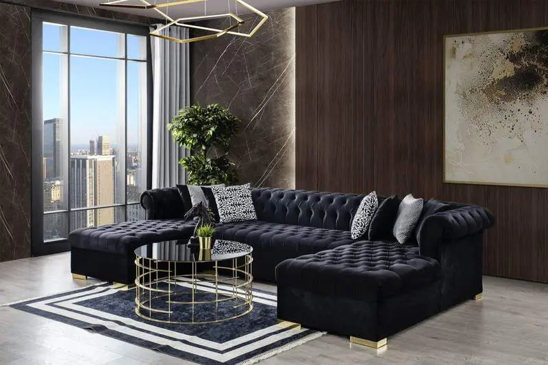 Lauren Velvet Black Double Chaise Sectional