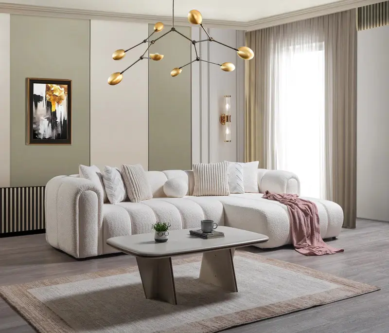 Designed with soft, curved lines and a plush texture, Lis Sectional brings a contemporary yet cozy touch to your living space.The clean, rounded edges and linear silhouette blend effortlessly into any modern interior, while the luxurious bouclé fabric adds a sense of warmth and sophistication.