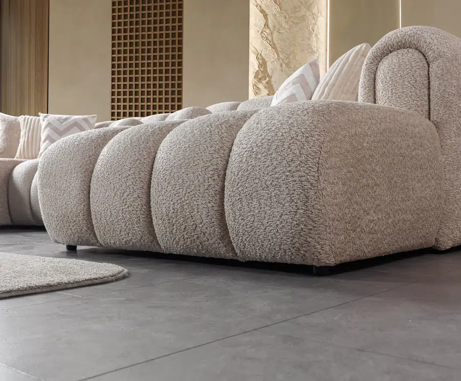 Designed with soft, curved lines and a plush texture, Lis Double Chaise Sectional brings a contemporary yet cozy touch to your living space. The clean, rounded edges and linear silhouette blend effortlessly into any modern interior, while the luxurious bouclé fabric adds a sense of warmth and sophistication.