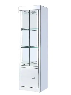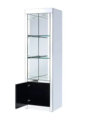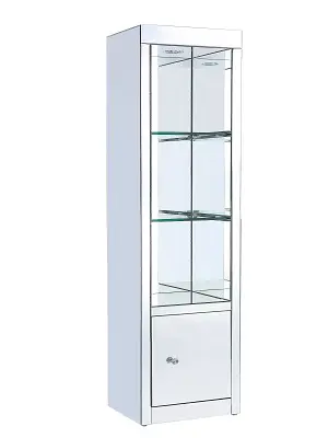 Assembled 3 Tier Shelf 1 Cabinet Tempered Glass