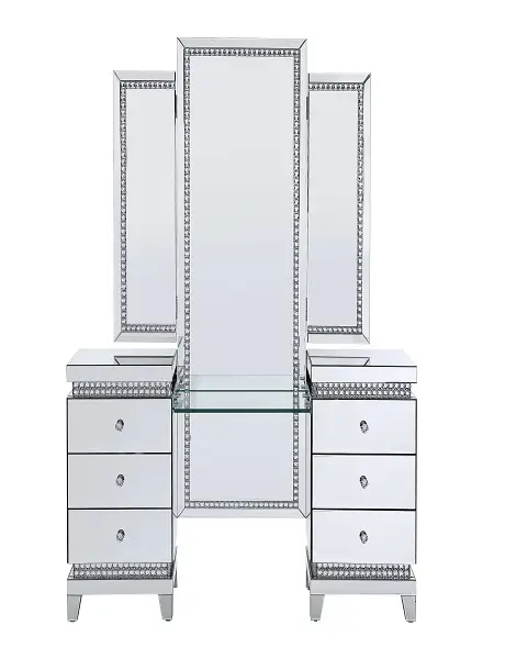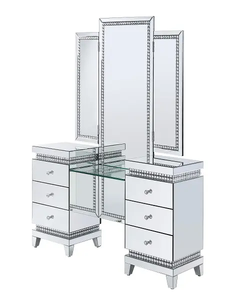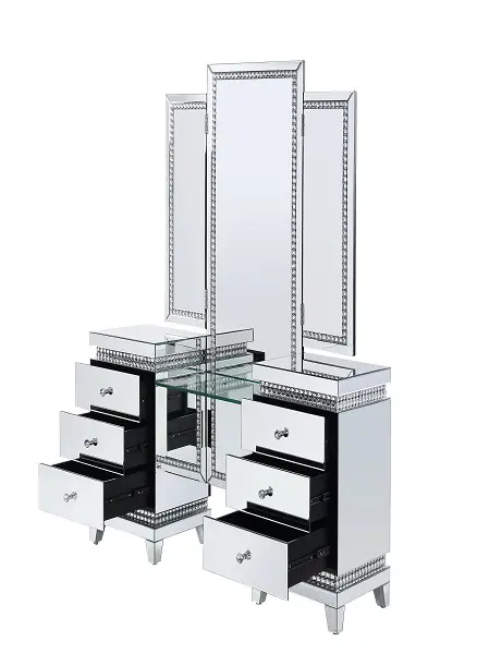 KD Tempered Glass 2 Side Tables Each Side Table Comes with 3 Drawers Includes Safety Stop and Self Closure French Front Dovetail Drawer Side Drawer Glide Felt-Lined Drawer 3/4 Extension Drawer Glide