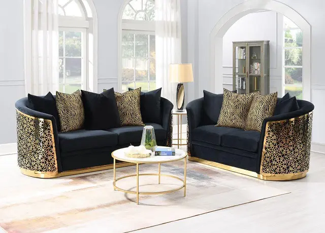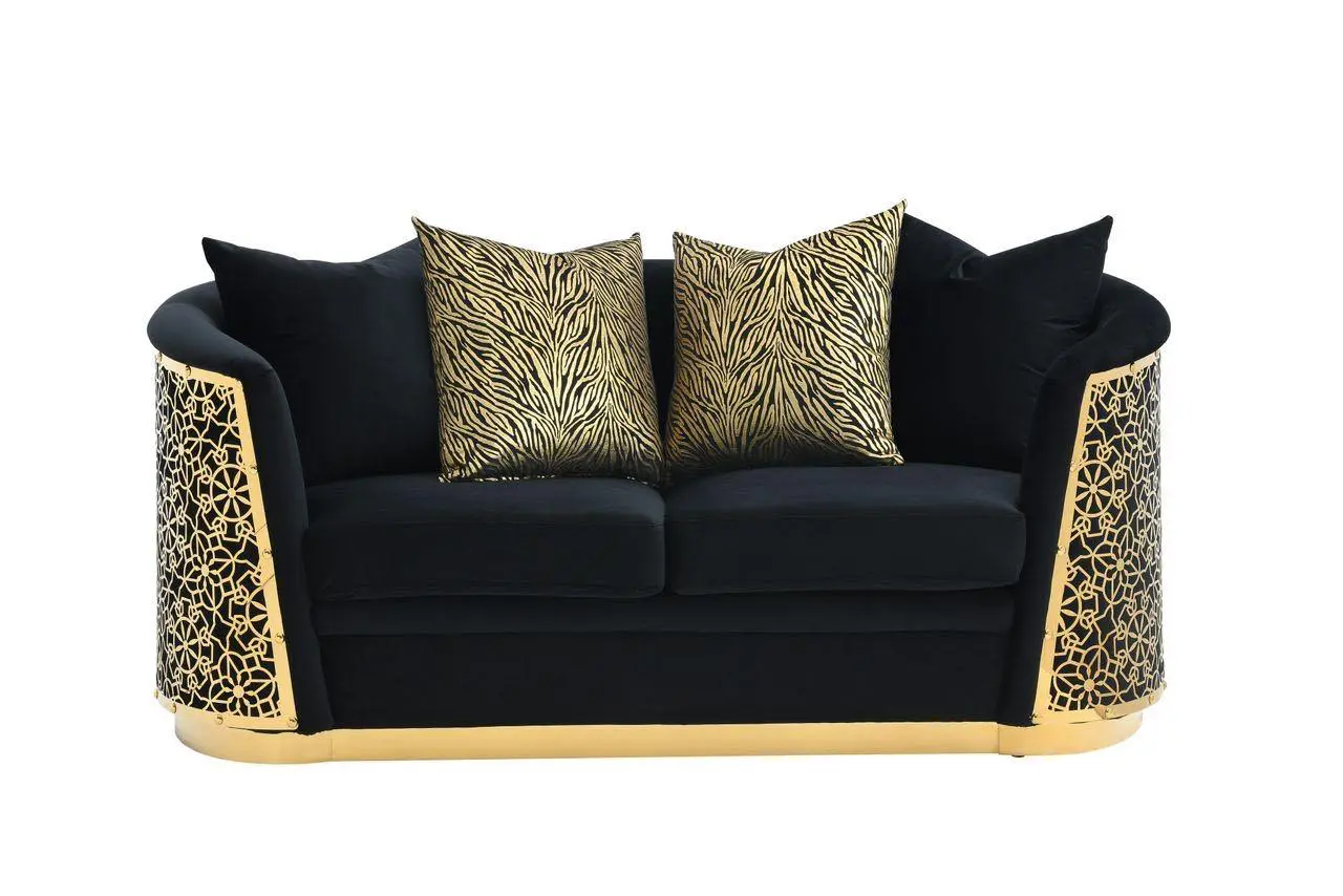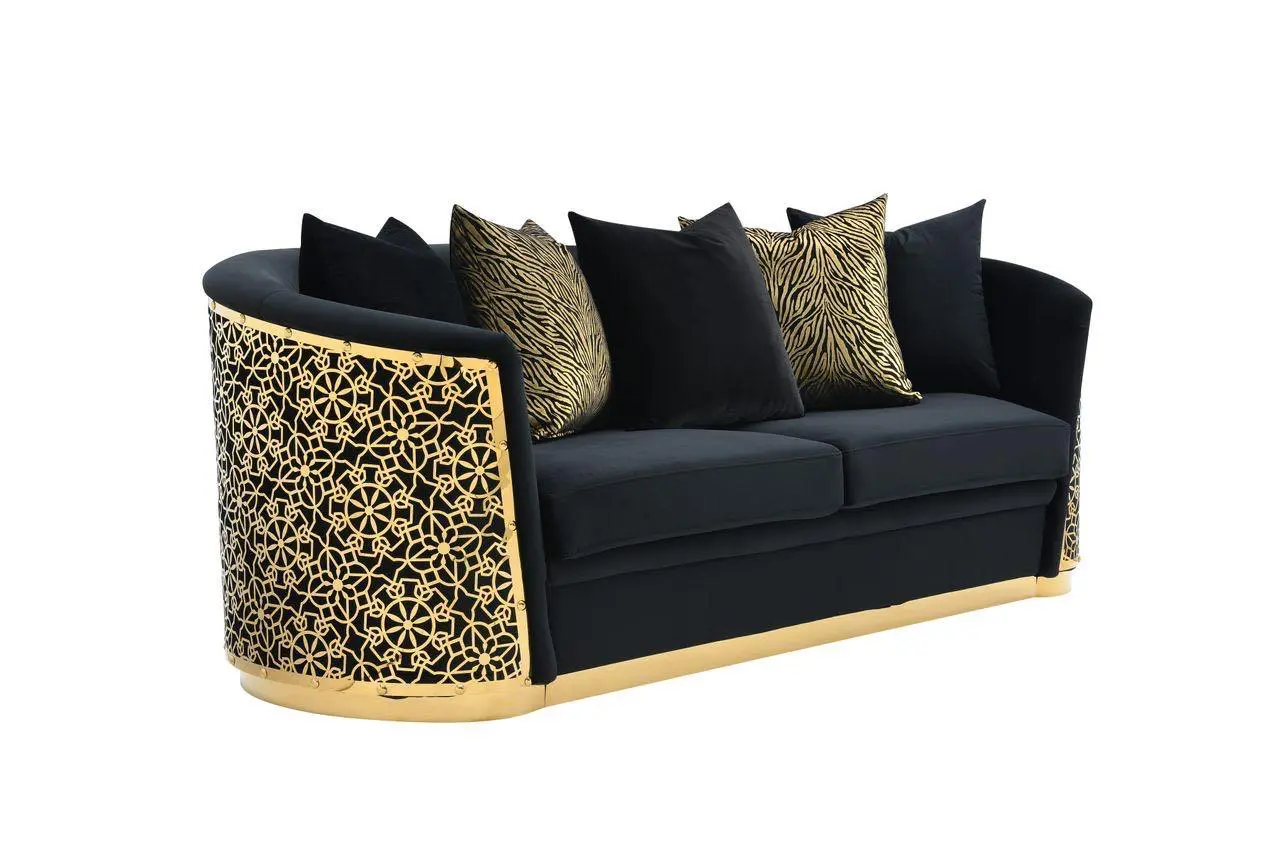 Bring modernity to the forefront with the addition of this Luciana velvet Set. Destined to become the most-talked-about addition to your room, this eye-grabbing sofa is an attention-getter from all angles. Its soft black velvet upholstery is touchably soft and feels great against the skin, and its chrome iron metal frame featuring a honeycomb pattern lends the chair an up-to-the-minute feel. Pair it with other items in the Casa collection for a streamlined look.
