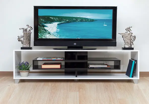 The shelf space make it easy to store home entertainment necessities such as your cable box or gaming console. The provided Yellow cubby space is great for entertainment accessories such as DVDs, games or even books. This TV stand would make for a nice addition to your living room, den, lounge, or bedroom.