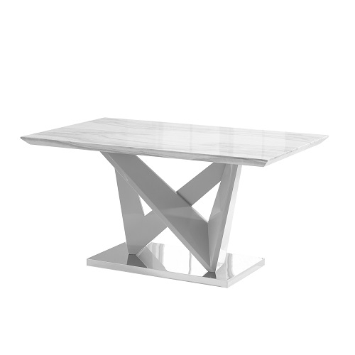 Create an ultimate functional and stylish dining room with this rectangular dining table. Featuring a faux marble table top with the artistic grey base, this dining table will showcase sophisticated natural aesthetics and add an elegant touch to any space.