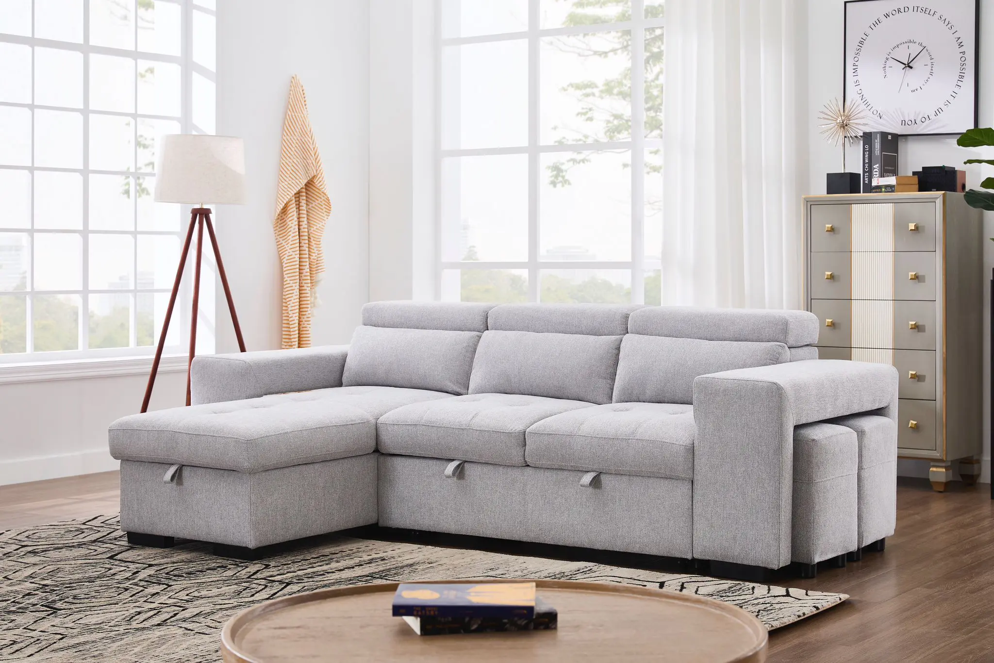 The Milano 2025 sectional sofa bed embraces a contemporary aesthetic with its clean lines and sleek silhouette. The premium fabric is available in a variety of pleasing neutral shades that add an air of refined elegance to any space, allowing it to effortlessly blend with various interior styles. Its timeless appeal ensures that it remains a centerpiece of your home décor for years to come. This sectional sofa offers more than just impeccable style.