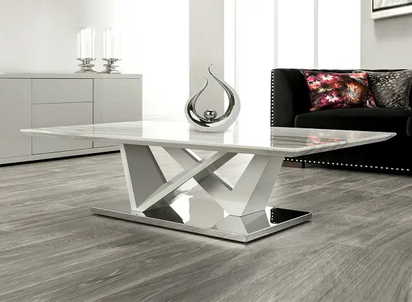 Marble finish coffee table with Chrome Base