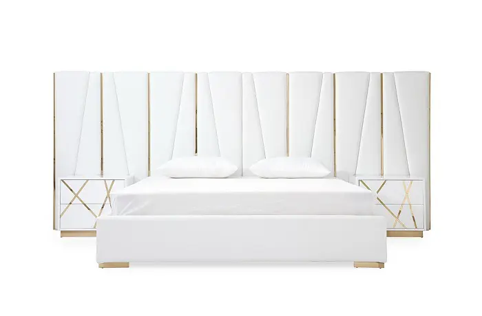 Modrest Nixa Modern White Bonded Leather & Gold Bed