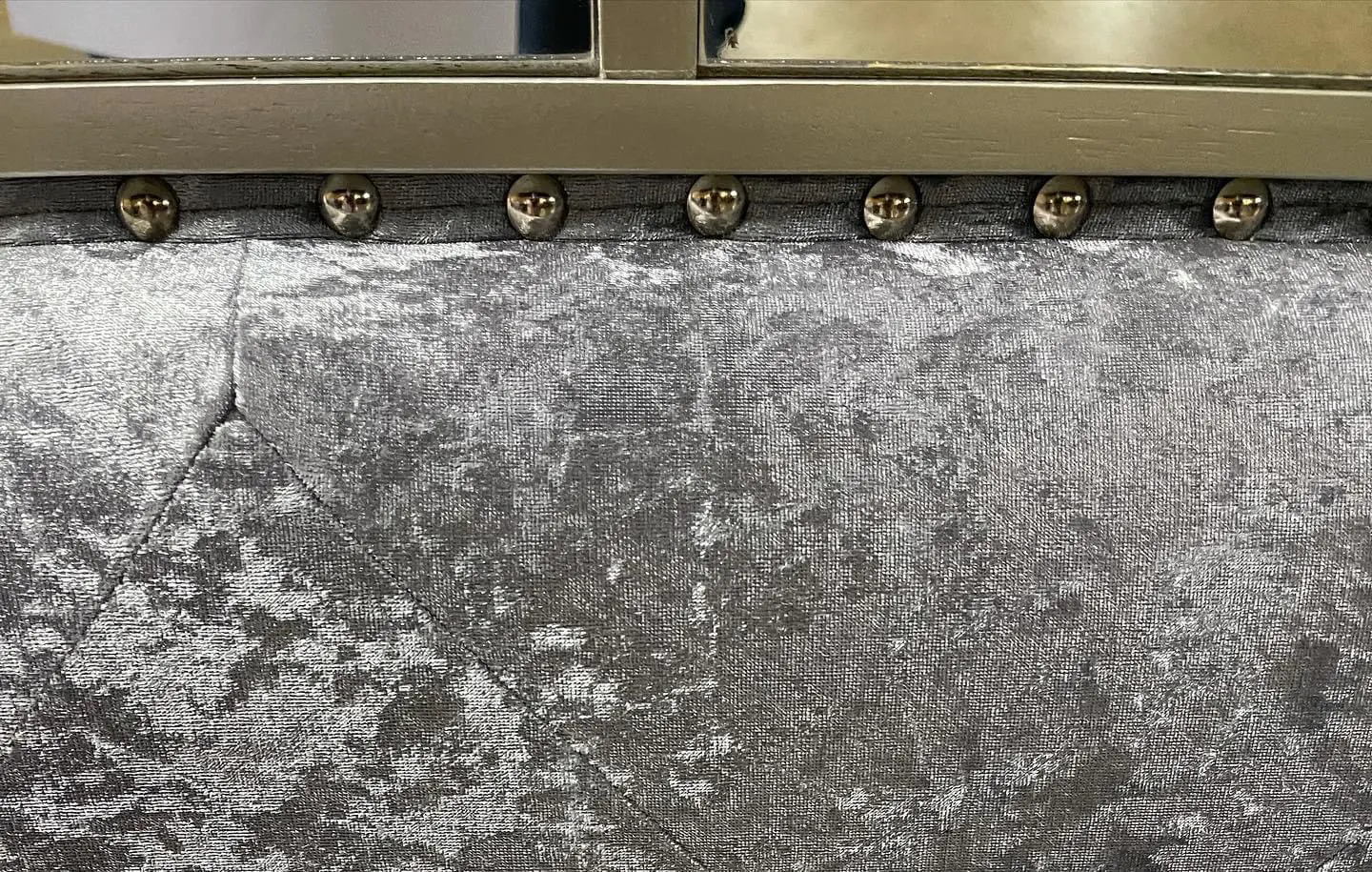 Create an ultra glam bedroom atmosphere with this stunning contemporary bed. The headboard and stirrup are upholstered in smooth brown leather and padding. The button lock adds an attractive touch of shine. This beautiful bed is completed with mirror trim to add romantic atmosphere to your personal space.