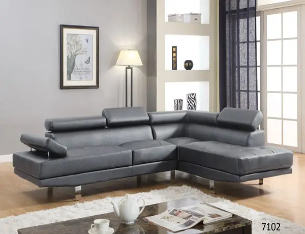 The futuristic design of this full-length sectional features a unit covered in bonded leather with a linear fashion of wide seating spaces making it a piece of out this world. Available in black, white, red, grey, chocolate, white/black and white/gray. Features Sectional sofa set with adjustable armrest and back supports Interlocking metal device between sofa and chaise to keep 2 pieces tight fit together Sofa Size Medium Assembly instructions, tools and parts included