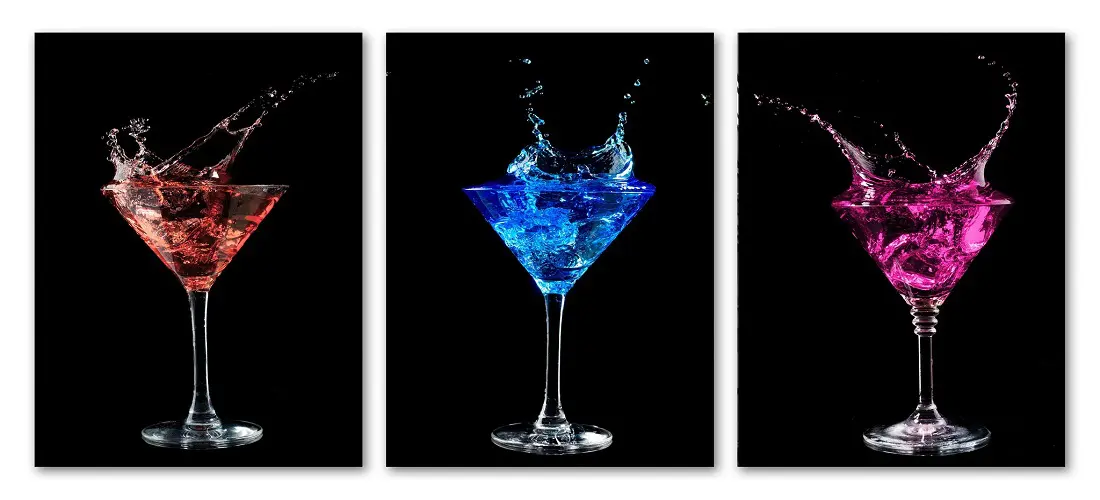 3PC Neon Martini Glass Wall Art