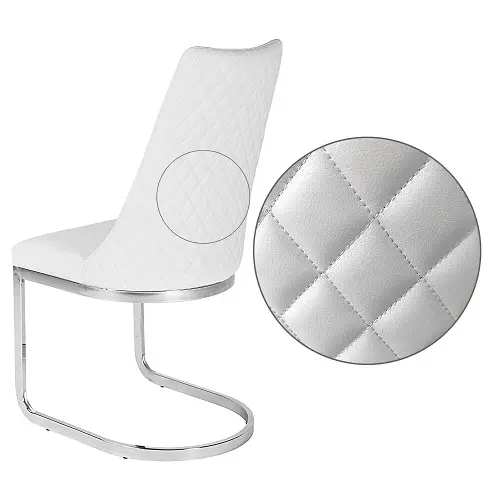 White dining chair for formal dining tables, white leatherette with stitching in the back of the chair.