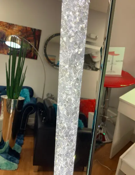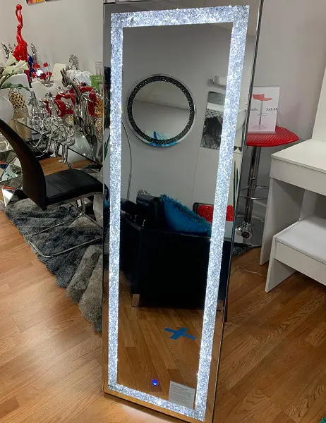 Make a striking statement in your home or office with this Noralie Floor Mirror. Featuring a rectangular shape and mirror frame with faux diamond inlay and led light , it creates a bold, yet elegant textured look. Contemporary yet beautifully crafted, this mirror will sure to be a great addition to your space.