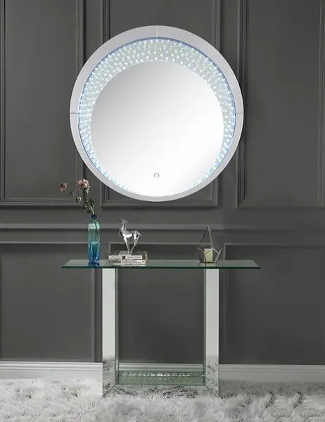 Mirrored & Faux GemStones Mirror, Glass, Faux GemStones, Composite Wood 39″Dia Glam/Modern