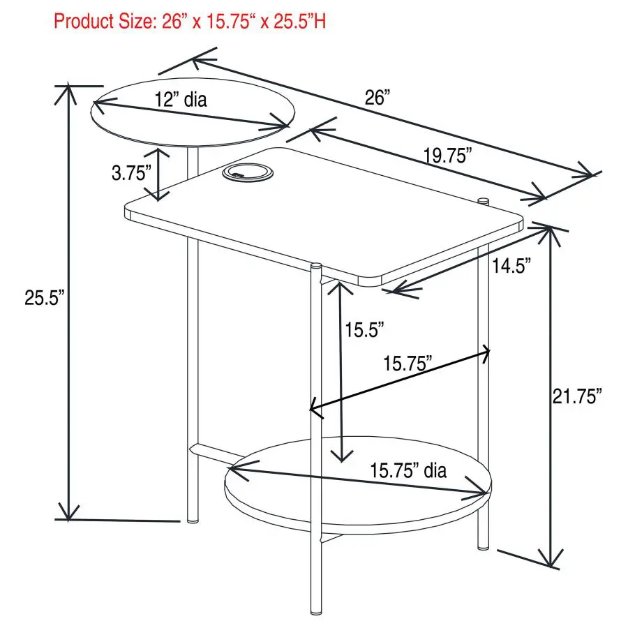 Outfit your favorite sitting area with plenty of modern functionality without sacrificing style. A contemporary tiered side table is a charming solution, perfect flanking an armchair or reclining sofa. It features a clean-lined design with a main tabletop in a white marble paper finish that adds luxe energy. The tabletop includes a wireless charger and USB port, perfect for keeping your personal electronics charged and ready. Two additional surfaces, one above and one below, feature round profiles and a rich wood grain finish and establish the layered presentation of the table.