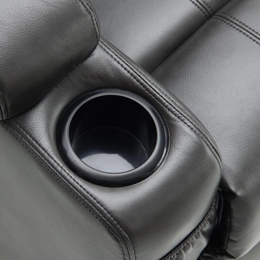 Fall in love with the sleek look and easy power lift functionality of a modern power recliner in soft, supple faux leather. Impeccably designed for both style and indulgent comfort, the recliner features pocket coils and foam cushioning, with track-style armrests that are capped with cupholders perfect for keeping refreshments at your fingertips. The chair is controlled via remote, perfect for easy operation of both recline and lift, making it easier than ever to find your perfect position. A side pocket completes the look with added functionality, creating the perfect spot to stash your tablet, a book, or even the television remote control. A plush headrest and covered leg rest ensure your ultimate comfort in a modern power lift recliner steeped in indulgence.