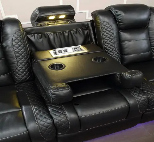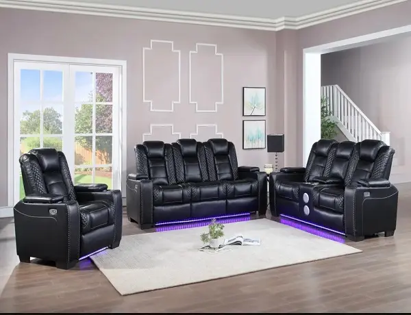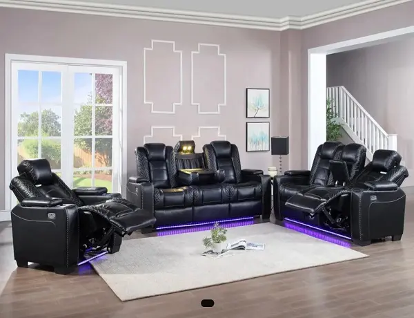 Create a comfortable space to lounge and entertain with this stylish, dual reclining Sofa set . Crafted with comfort and convenience in mind, it’s a fabulous living room upgrade. The luxurious softness of coated microfiber combines with a memory foam topper to form an exquisitely comfortable seat. Its built-in console features soft-closing life top storage with a built-in power outlet and two cup holders. This power loveseat makes a comfortable setting for your home entertainment needs.