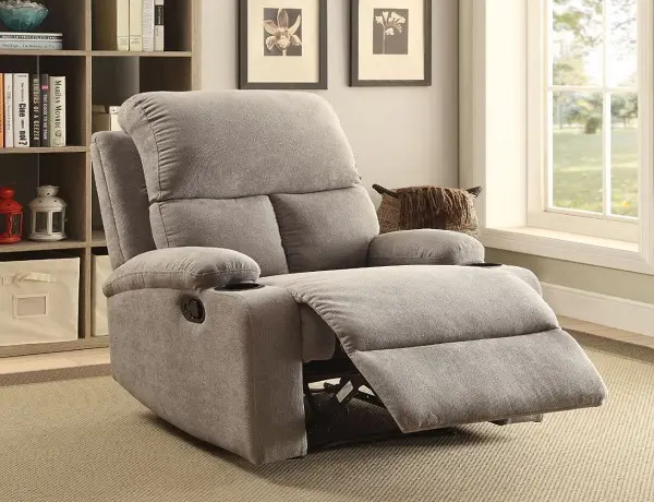 KD Back, Motion Reclining Mechanism (External Latch Handle) Tight Back & Seat Cushion Armrest: Pillow Top & Cup Holder (Both Arms) Construction: Pocket Coil Seat, Metal Reclining Mechanism, Wooden Internal Frame (No Glider/No Rocker) Clearance between Recliner and Wall: 5″ Material: Velvet Fabric (Solid Pattern)