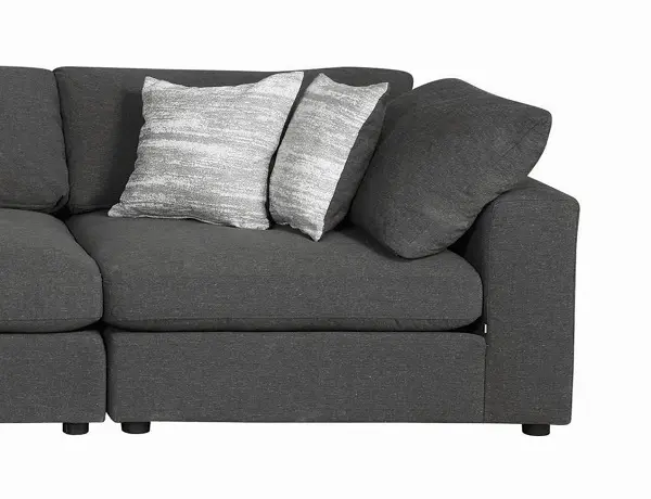 Create your own modular home setup with this plush, armless chair. It entices you to sink into its deep, comfortable cushions. The chair can function alone, as well as part of a larger sectional sofa. The simple lines of the piece add up to a comfy, easy-to-use element in any decor. Linen adds a natural textural accent.