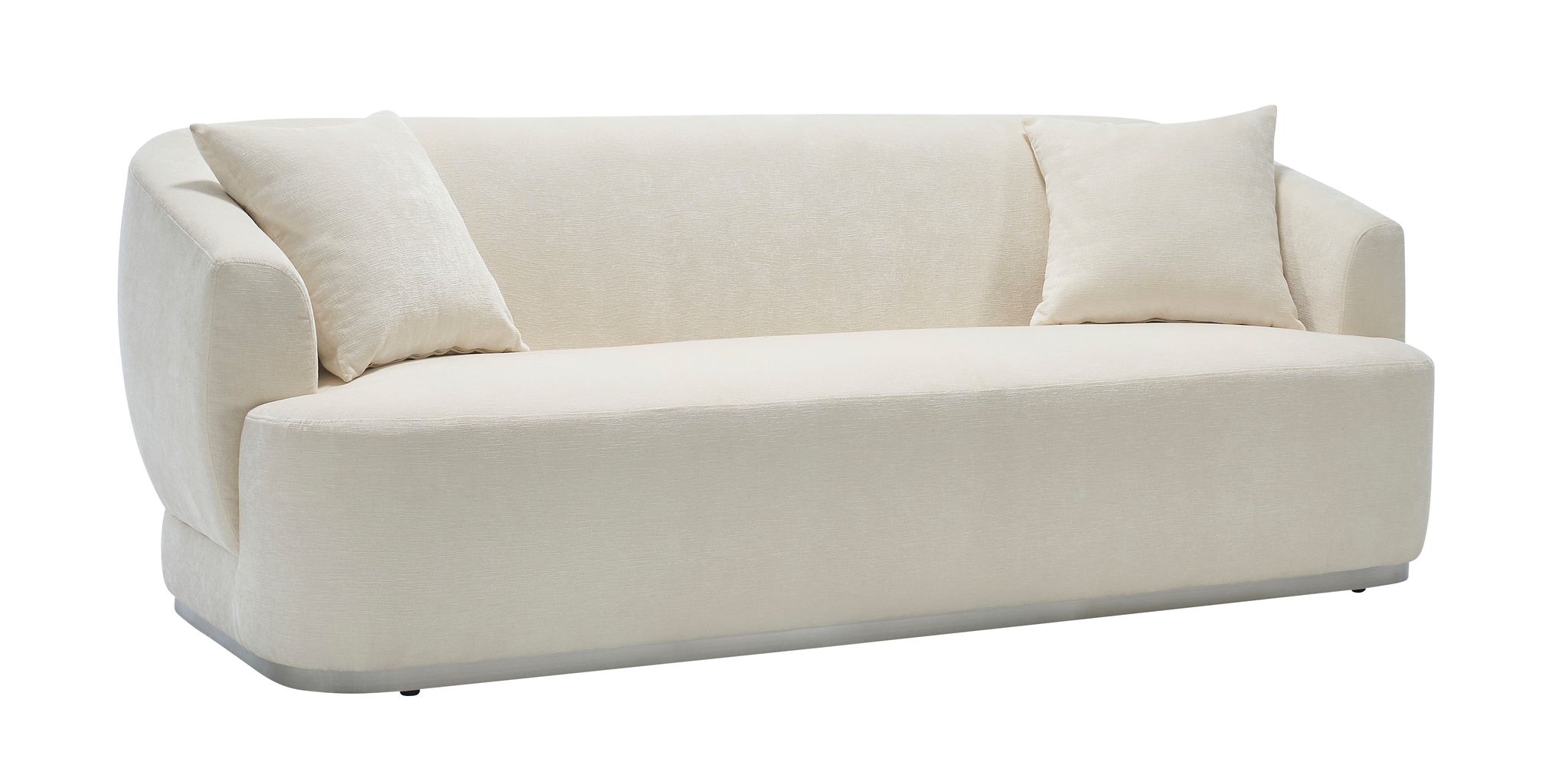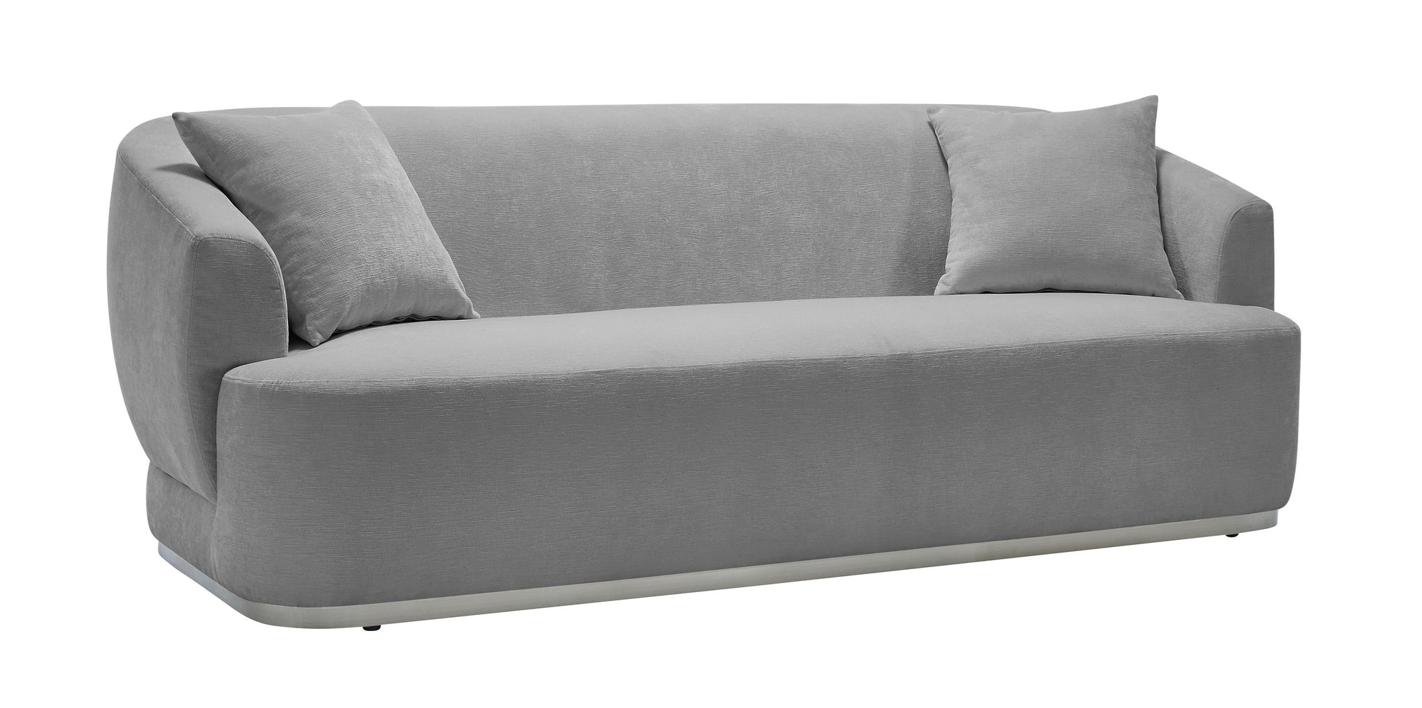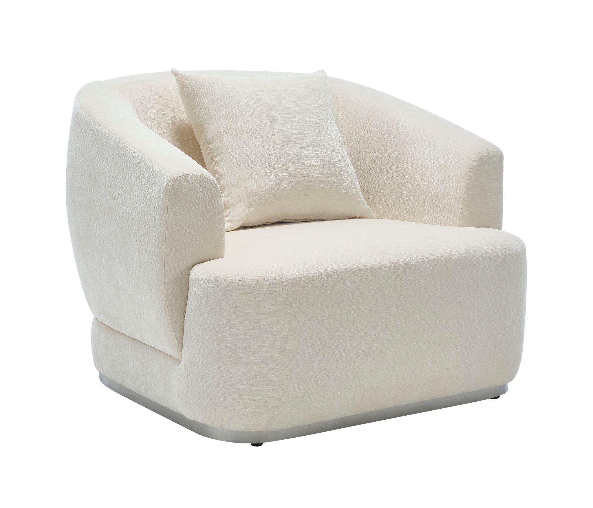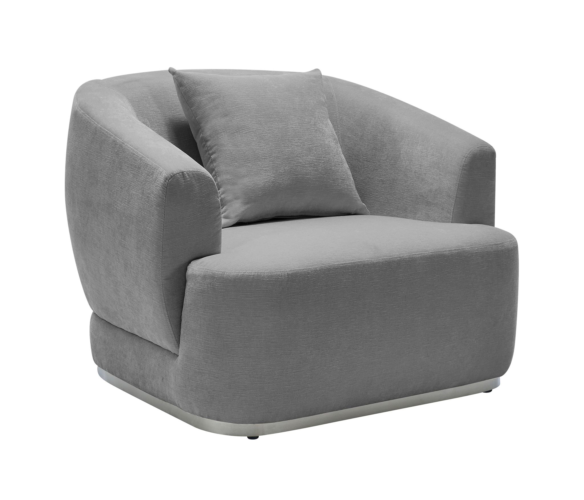 Unwind and rest when seated on this luxurious Stefan Sofa Set . This lovely set is just the thing to inject drama into your living space. The plush seating offers countless hours of relaxation. The unique barrel shape immediately commands attention, and the brushed chrome stainless steel detailing finishes off the base in contemporary panache