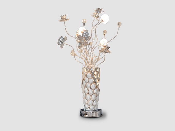 Modern table lamp with metal flowers.