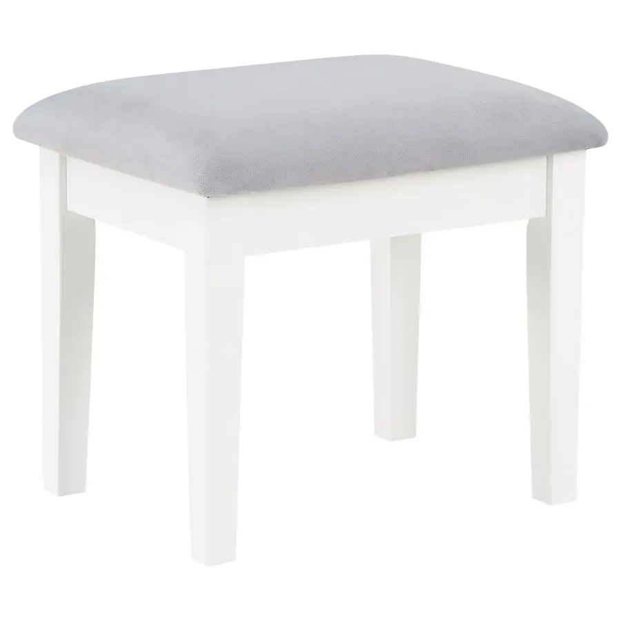Take modern glam to new heights with the bold contrast and sophistication of this contemporary vanity desk. With six roomy drawers for easy storage, including a felt-lined top drawer for delicates, the large desk features a bold black and white finish sure to stand out within your bedroom or dressing area. A tri-panel mirror equipped with 14 lights, delivering the bright illumination you need for applying makeup and styling hair. The clean-lined design is complemented with crystal-like knobs that glimmer in the light, and tapered legs that offer excellent support and stability. The vanity is complete with full extension metal glides for seamless performance as you prep for everything from a day in the office to a night out on the town.