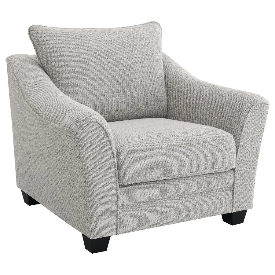 Approachable style pairs with tailored elegance in a three-piece modern sofa set. Light gray upholstery is a lovely neutral, while patterned accent pillows in complementary black, gray, and white create a pop of texture and depth. Each piece in the set showcases elegant sloping arms to complement a clean silhouette, offering refined simplicity in your living room. Plush foam cushions pair with sinuous springs and pocket coils for excellent support and comfort for lounging and entertaining friends and family. tapered block feet in a black finish complete the look with elegant appeal.