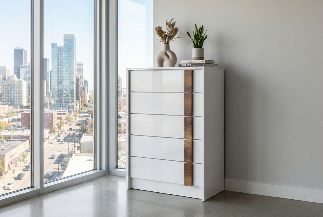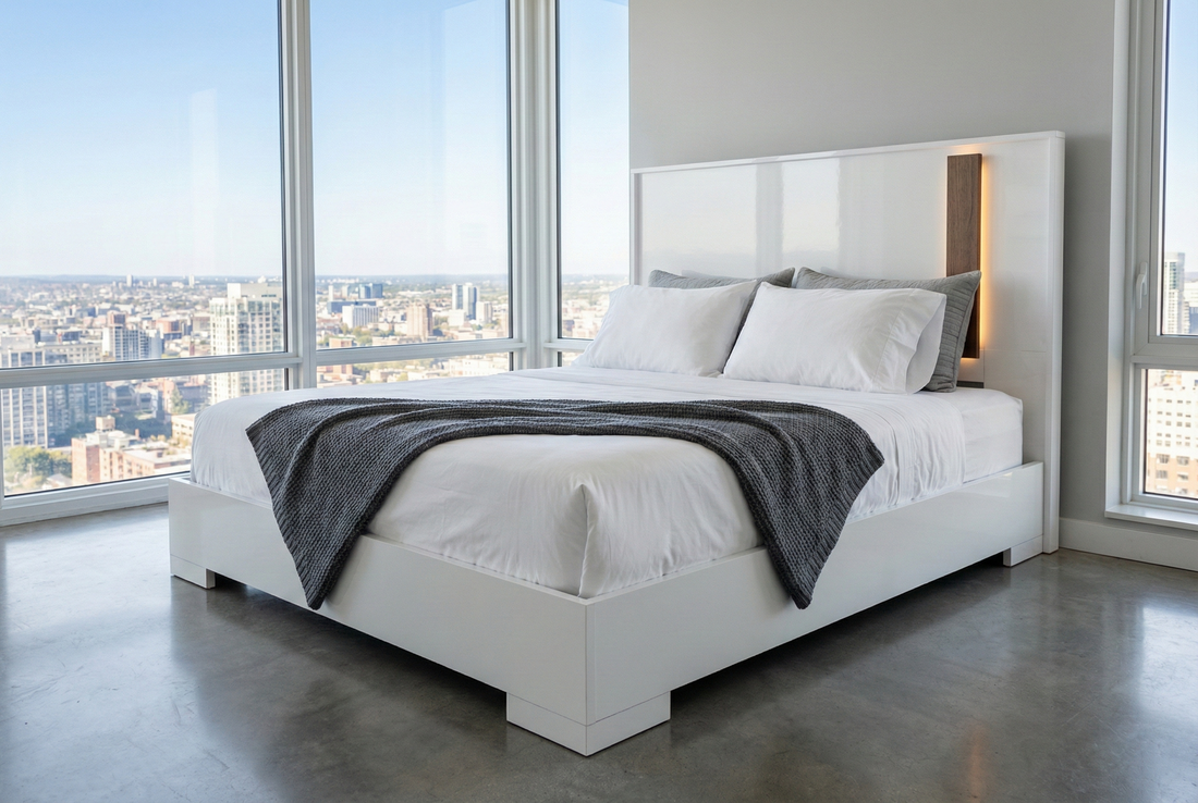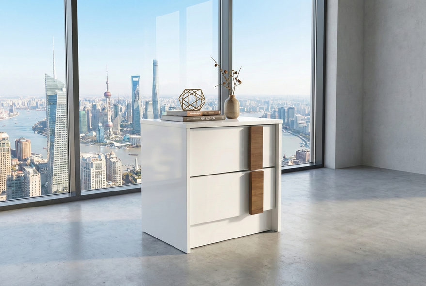 Add a glam touch with lacquer material. An eye-catching design with sleek style. Make any room a decor haven with this exceptional bedroom Set.